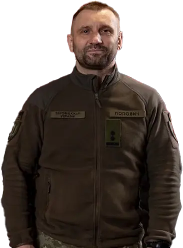 Popovich volunteered to join the Armed Forces after seeing news reports about the battles for Ilovaisk and Donetsk Airport. After completing training at one of the Armed Forces’ training centers, he was assigned to the 93rd Mechanized Brigade as a machine-gun platoon commander. The brigade was then responsible for defending the Butivka mine near Avdiivka. Within months, Popovich was promoted to company commander. In 2023, he transferred to the newly formed 117th Mechanized Brigade, where he served until his appointed to 57th Motorized Brigade.
